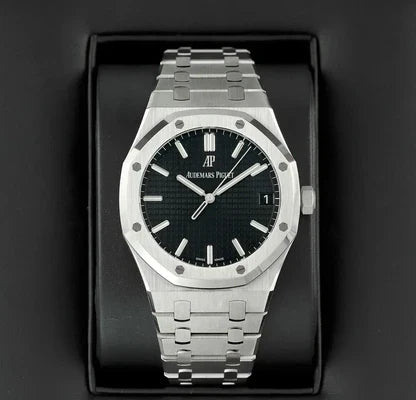 Crafted for those who appreciate design excellence, this timepiece takes inspiration from the iconic Audemars Piguet Royal Oak. Its sleek stainless steel finish, distinctive bezel, and sharp angles command attention—without needing to say a word.